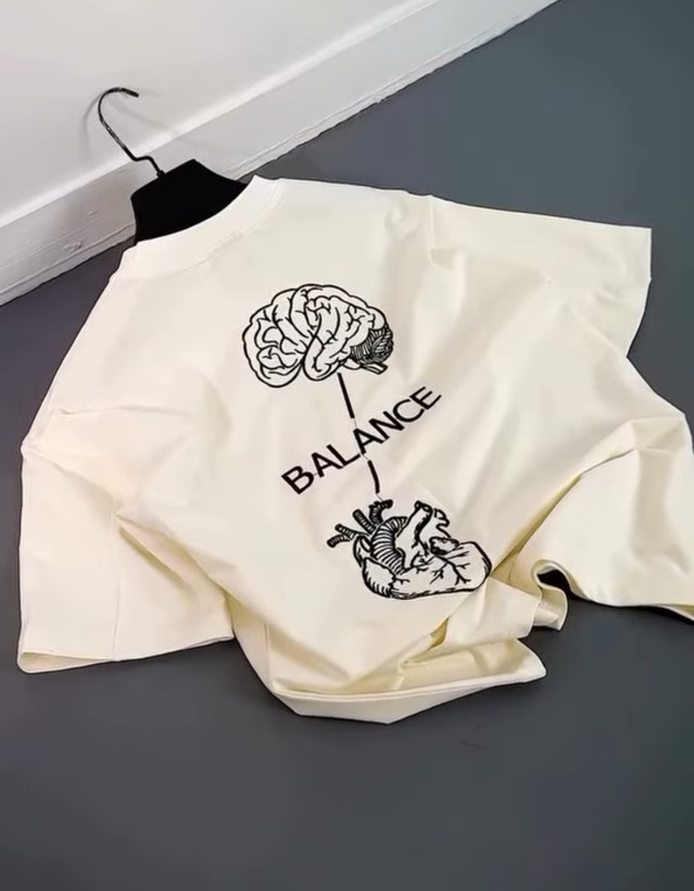 تیشرت باکسی طرح قلب و مغز سوپر پنبه